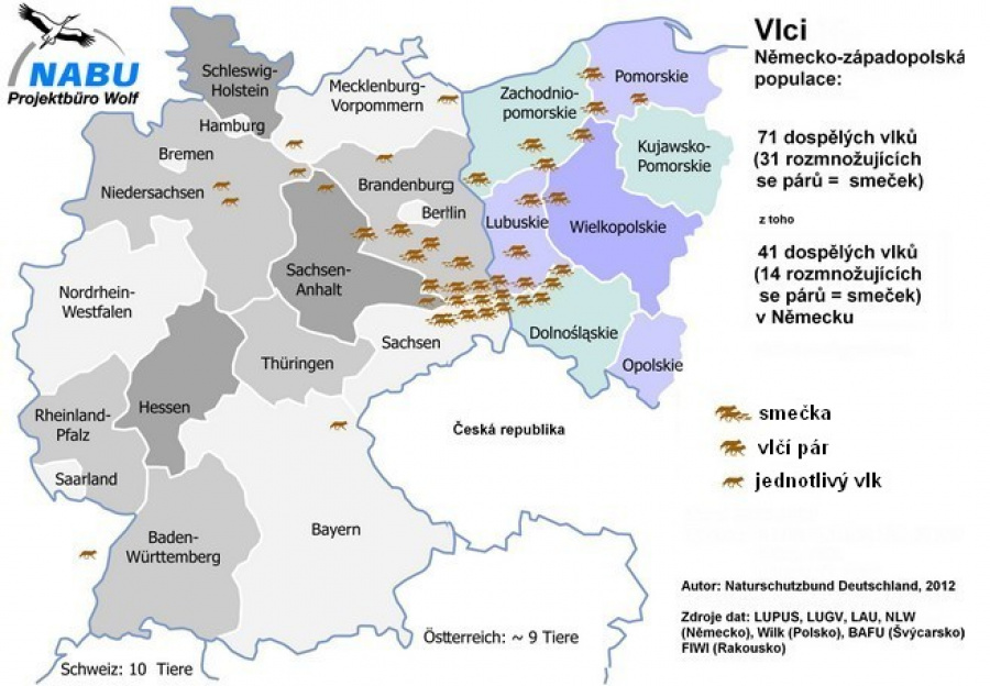 V saské části Lužice se podle nejnovějších informací z letošního roku nachází 7 smeček. V Braniborsku mají svoje teritorium tři smečky a jeden pár, jedenáctá smečka se pohybuje na pomezí obou zmíněných spolkových států. Výskyt vlčích smeček na německo-polském pomezí zobrazuje následující mapa.
