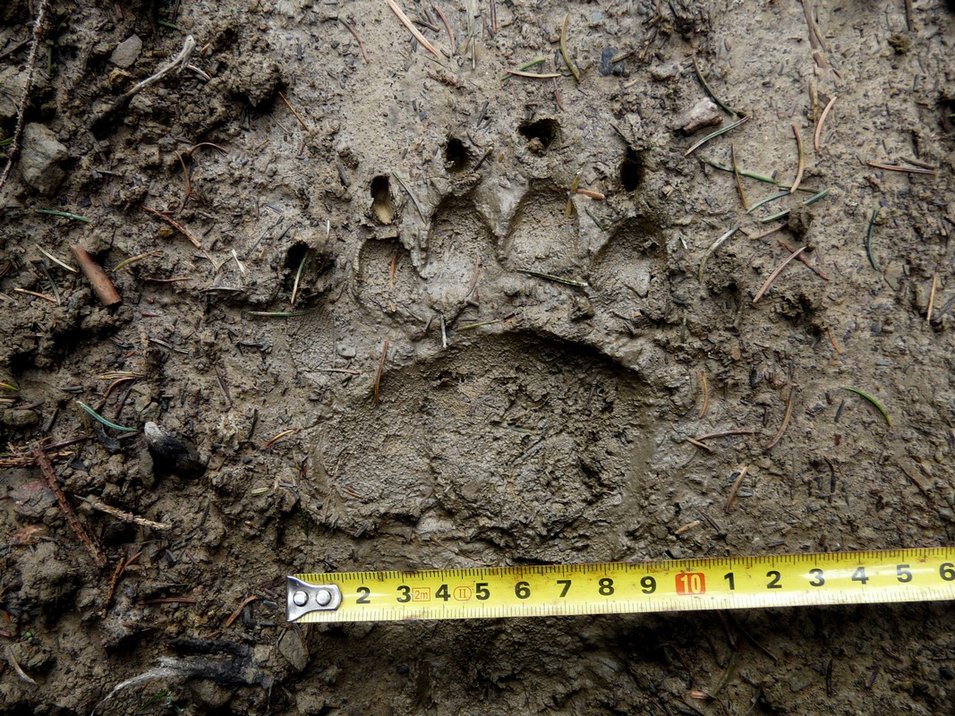 Medvědí stopy jsou snadno rozeznatelné podle tvaru i velikosti. Otisk přední i zadní tlapy je pětiprstý, pátý prst se však někdy otiskne jen velmi slabě. Medvědi patří mezi ploskochodce – stejně jako např. primáti došlapují na celou plochu chodidla.