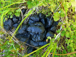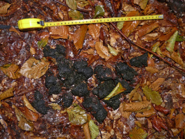 Vzhled medvědího trusu je velmi různorodý v závislosti na aktuální potravě zvířete. Může to být 3–6 cm tlustý válec, nepravidelná hromada nebo i řídké lejno podobné kravskému. Charakteristická je rozpoznatelnost jednotlivých součástí způsobená nedokonalým trávením. Během vegetační sezóny trus obsahuje množství semen či slupek lesních plodů, například pecičky a listy borůvek či slupky bukvic, protože se medvědi živí hlavně rostlinnou potravou. Dále může trus obsahovat zbytky hmyzu (krovky brouků), pecky třešní či švestek nebo i chlupy. Trus z trávy je hodně tmavý a homogenní.